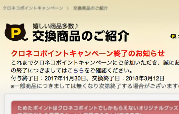 2017年の秋、残念なお知らせが届きました。2018年3月12日で、「クロネコポイントキャンペーン」がなくなってしまうのです。 -