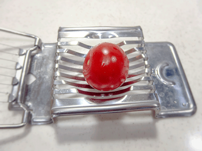 【検証】エッグスライサーでトマト、オリーブの実をカットしてみた