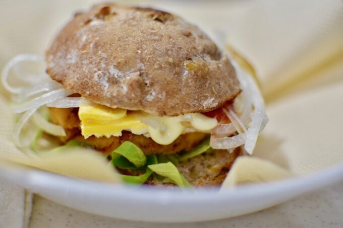 パテは「がんもどき」、手抜きでいくハンバーガー