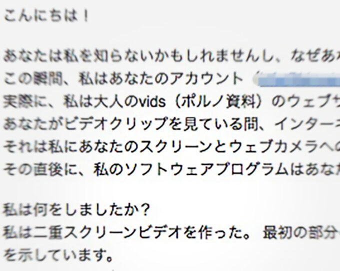 サイバー攻撃を装ったスパムメールが届きました。たどたどしい日本語が真実味を演出します。スパマーは開口一番、このように脅しはじめました。 -