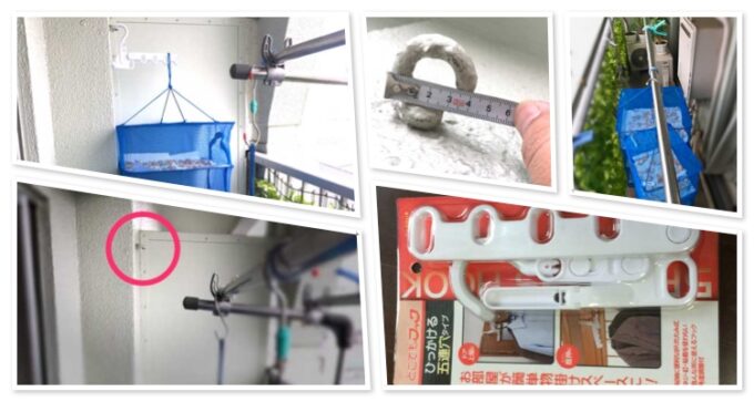 洗濯物と野菜干しは、狭いスペースでも共存できそうです。本来は洗濯用のフックですが、いろいろな活用法がありそうです。 -