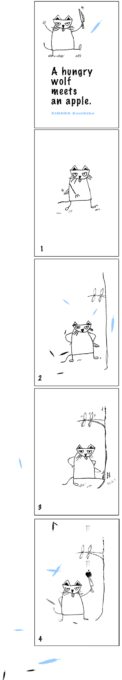 A hungry wolf meets an apple.(腹ぺこオオカミがリンゴと出会う)